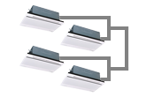 天井埋込カセット形2方向は2つの吹き出し口から送風するので、設置する場所が細長い部屋の場合に適した形状です。